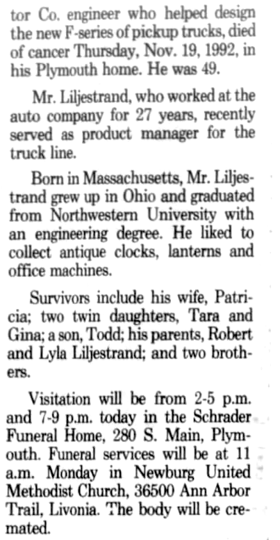 Newspapers.com, Detroit Free Press, Detroit, Michigan, 22 Nov 1992, p. 29 : accessed 11 Oct 2025.